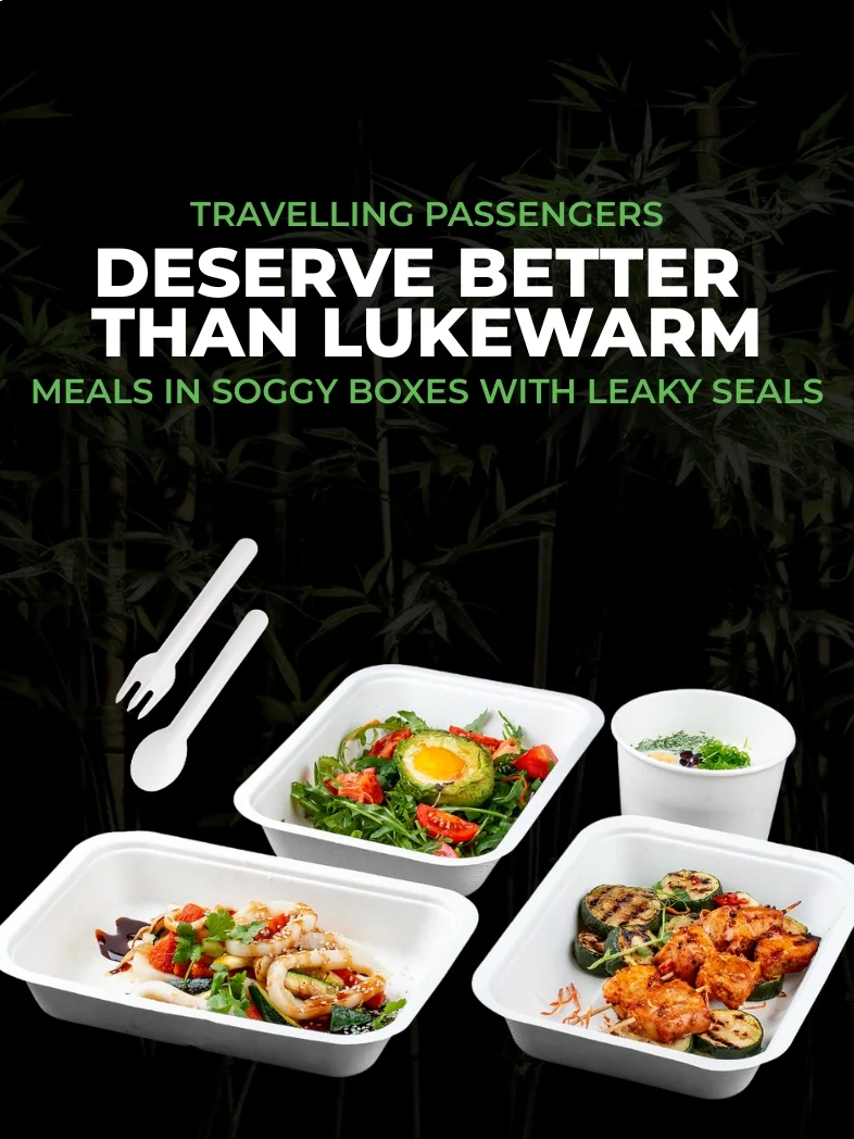 In airline and rail catering, food is often packed hours before it reaches the passenger. But the journey from kitchen to seat is full of risks — and plastic or poor-grade disposables often fail when it matters most: