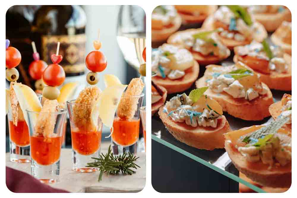 Cocktail starters, canapé spreads