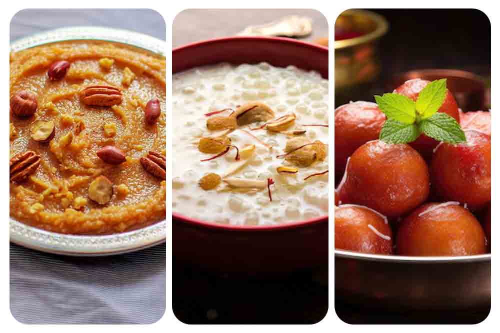 Halwa, kheer, gulab jamun, or pastry portions