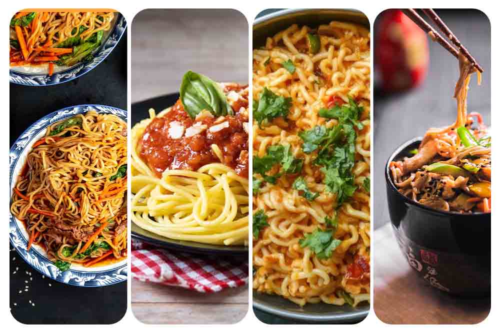 Hakka noodles, spaghetti, maggi, stir-fry bowls