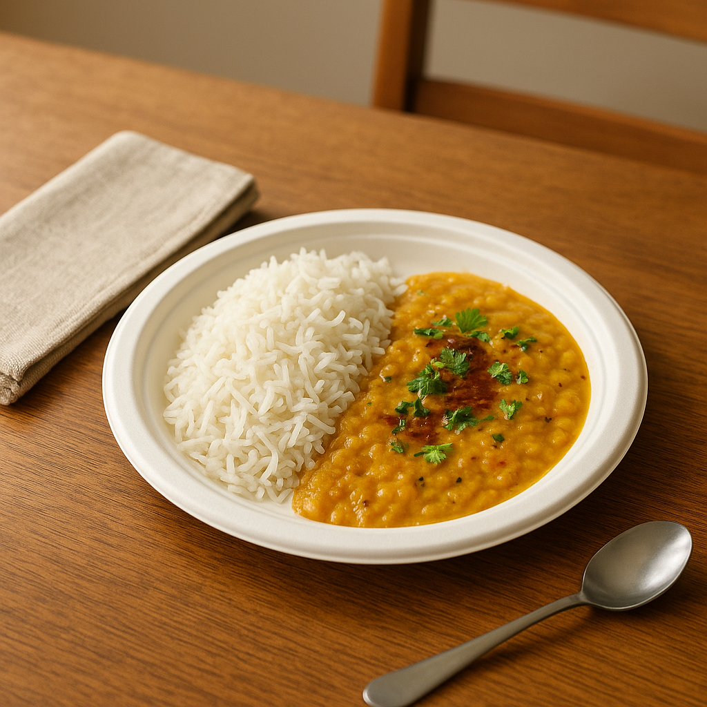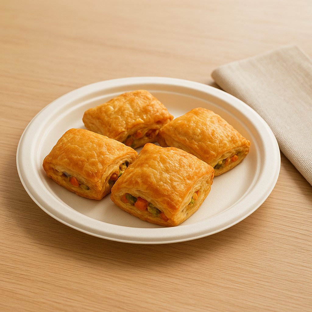 The 9” bagasse plate can comfortably hold up to 500–600 grams of food without bending — including rice meals, snacks, or stacked servings.